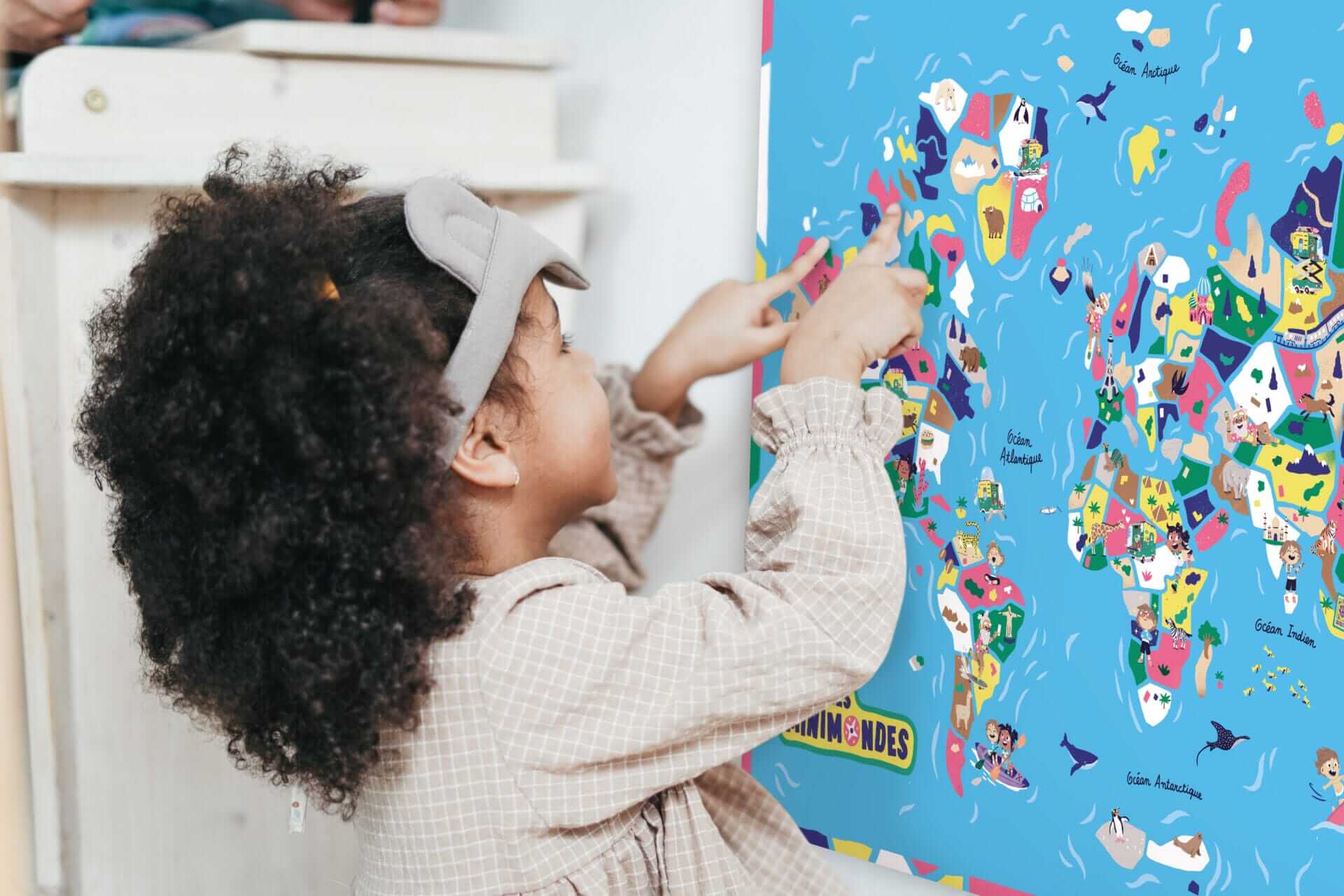 La carte du monde permet à votre enfant de s’initier à la géographie en situant le pays du mois mis à l’honneur dans le magazine. Elle lui permet de partir à la découverte des océans et des continents, mais aussi de développer son sens de l’observation et d’utiliser ses nouvelles connaissances du monde fraîchement acquises avec tous ses petits détails illustrés par l’incroyable Antoine Corbineau.